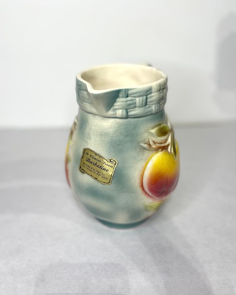 Cruche à décor de Poires. Barbotine de la manufacture de St Clément signée et numérotée 7454.